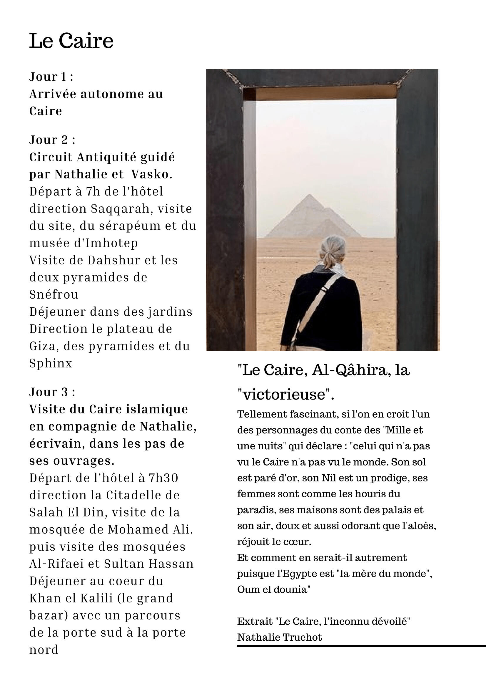 Passionnée de carnets de voyage, elle aime imaginer des séjours différents afin de partager avec ses hôtes la magie de l' Égypte, en toute sérénité.