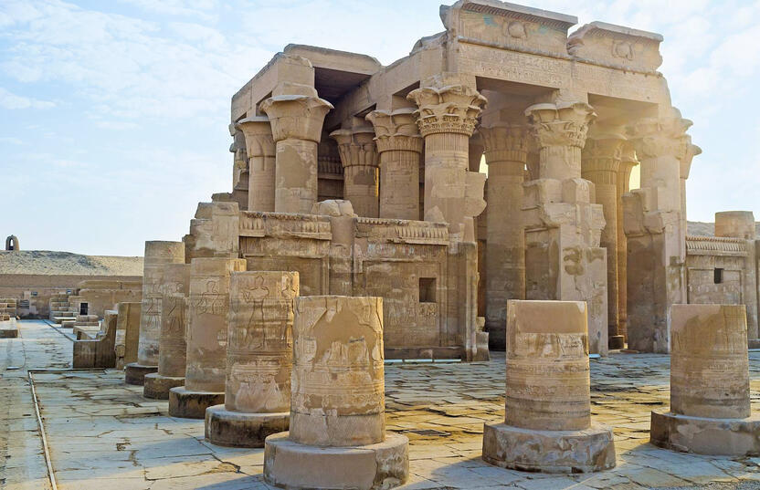 A proximité du rivage, ce temple double est dédié à deux divinités égyptiennes : le dieu-faucon Haroëris (Horus l'ancien) et le dieu crocodile Sobek.