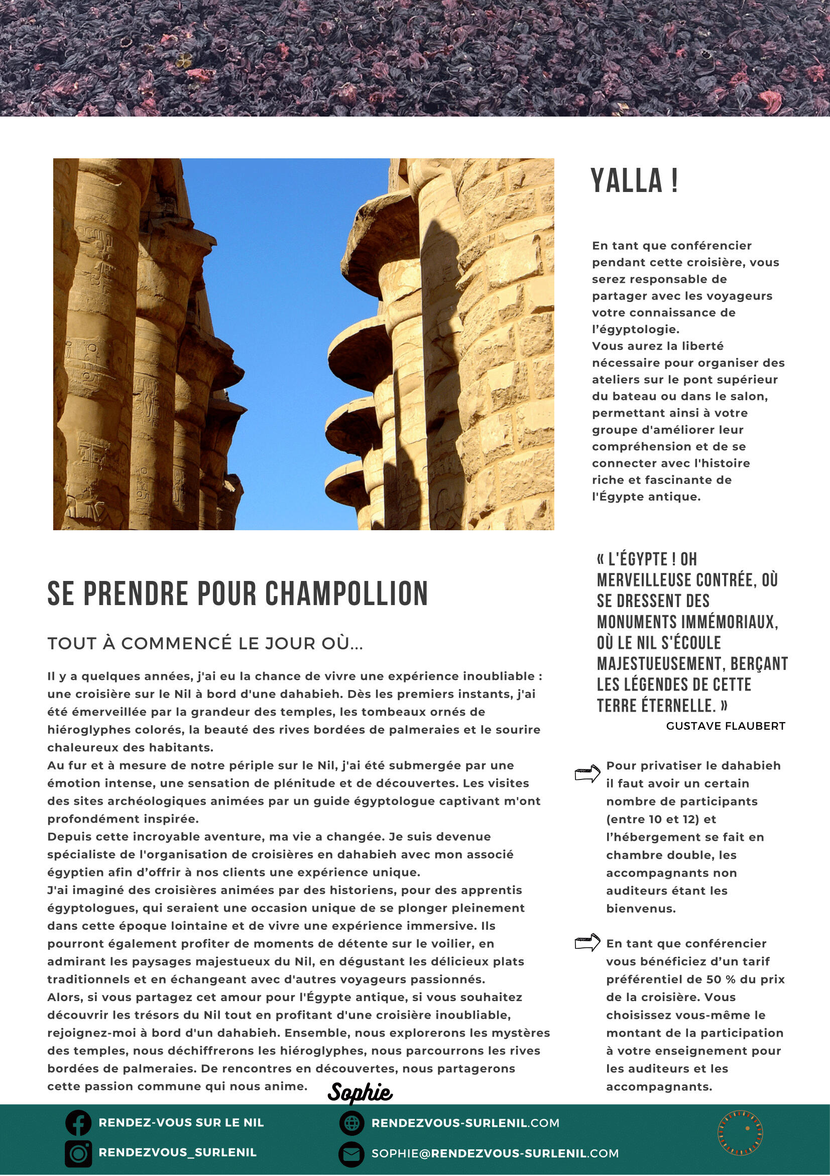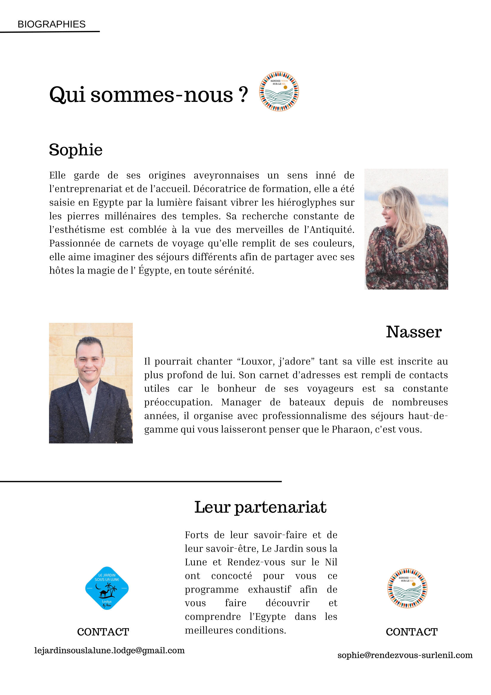 Passionnée de carnets de voyage, elle aime imaginer des séjours différents afin de partager avec ses hôtes la magie de l' Égypte, en toute sérénité.