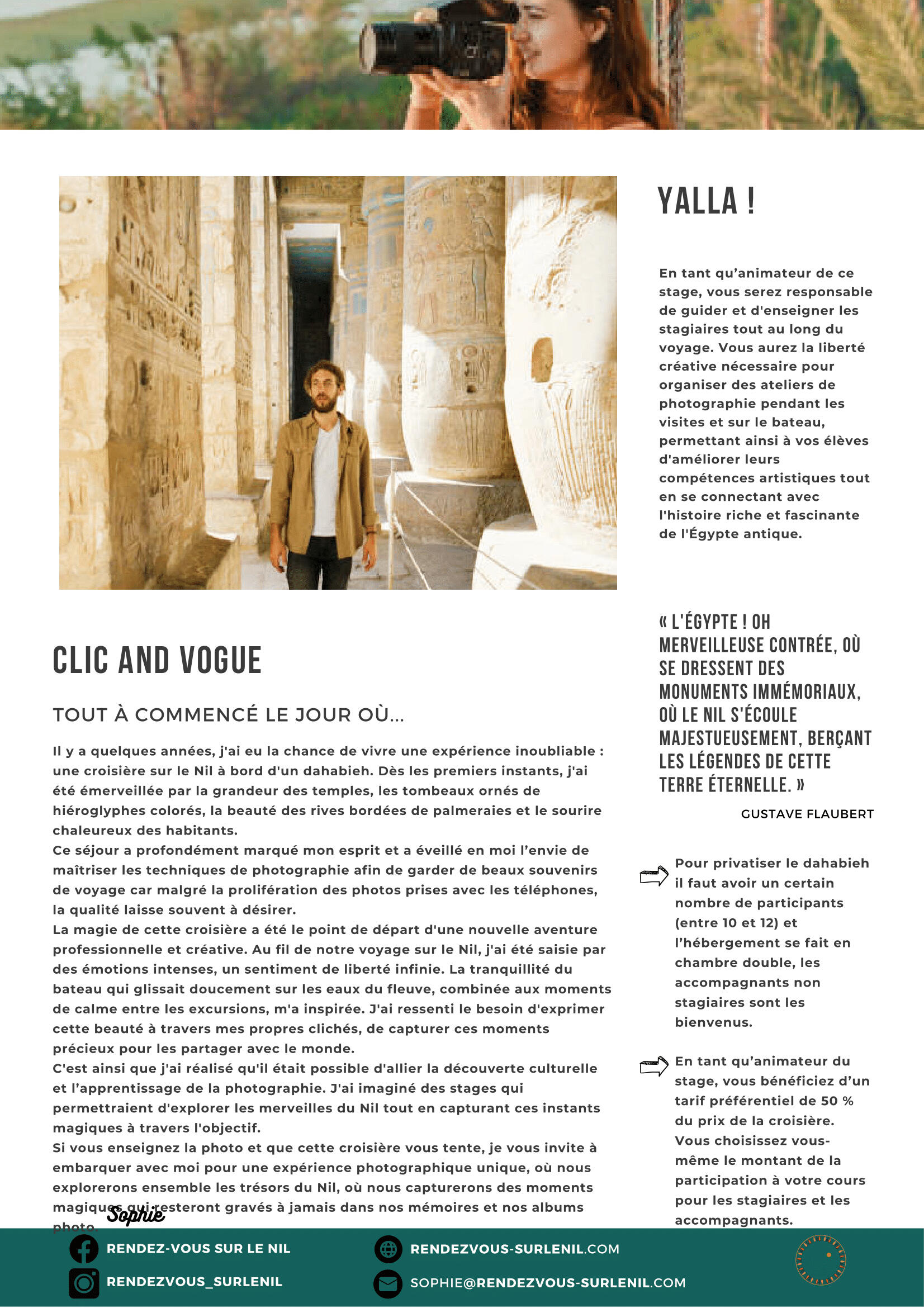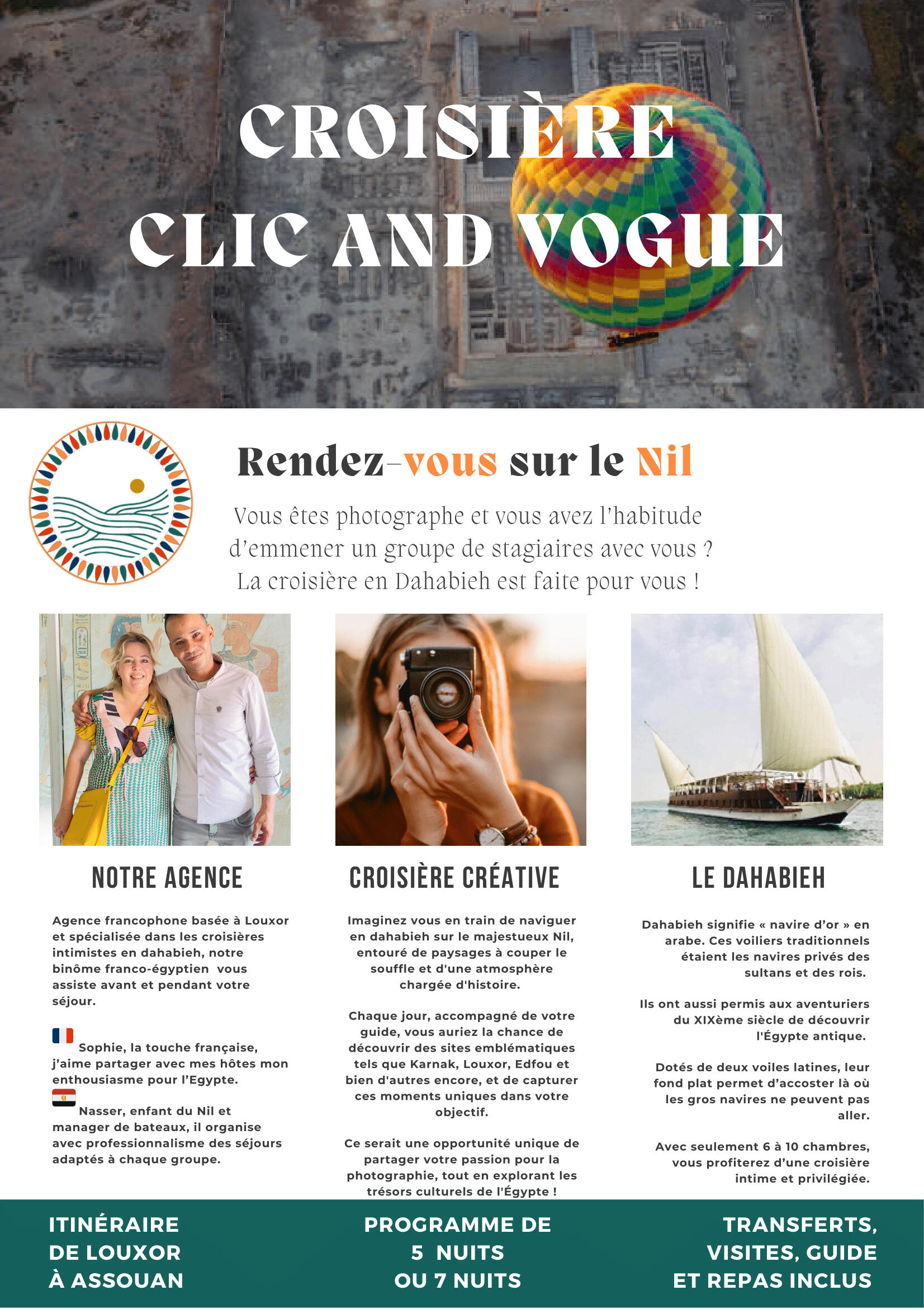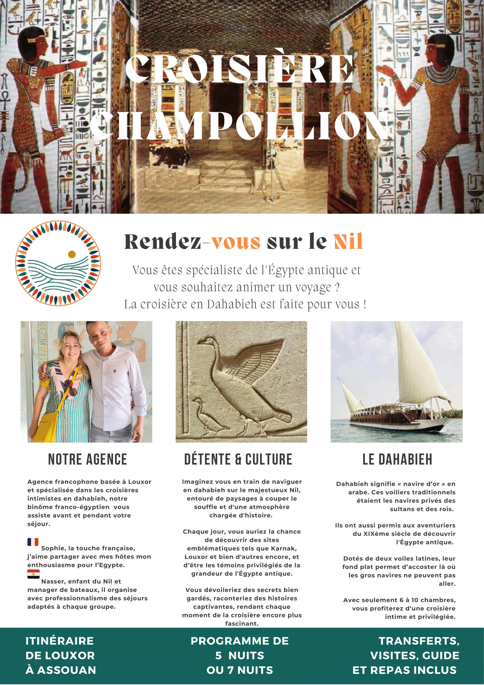 Enfant du Nil et manager de bateaux, il organise avec professionnalisme des séjours haut-de-gamme qui vous laisseront penser que le Pharaon, c'est vous !