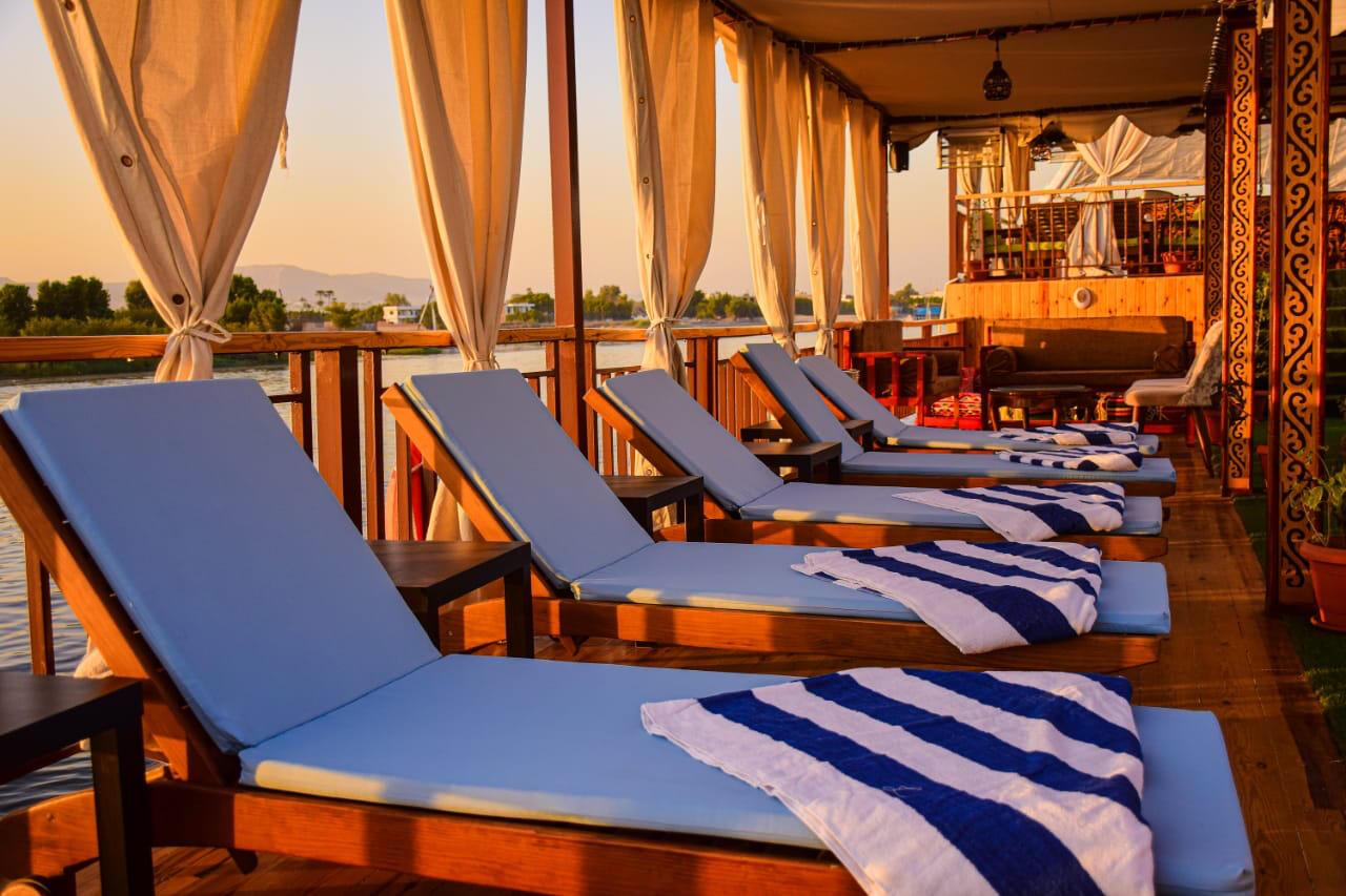 À bord, vous glisserez dans un rythme relaxant à travers les eaux douces du Nil. La cuisine orientale concoctée à base de produits frais ravira vos papilles, et un équipage attentionné vous invitera à bronzer sur le pont supérieur en sirotant un verre de karkadé (infusion d’hibiscus).