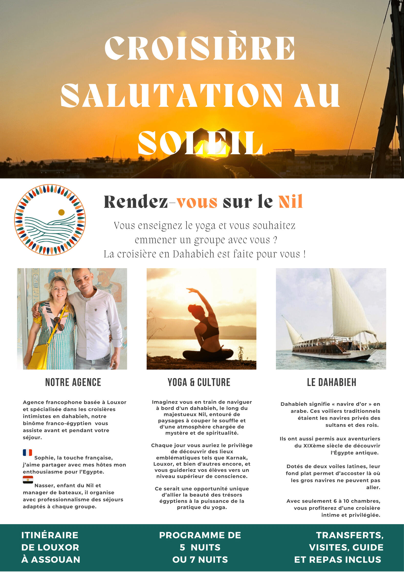 Un séjour authentique en dahabiya est une expérience unique et charmante qui vous permettra de remonter le temps et de découvrir l'Égypte d'une manière traditionnelle. Pendant votre navigation, vous aurez l'occasion de visiter divers sites historiques, temples, et autres trésors de l'Égypte ancienne et vous pourrez accoster où vous voulez contrairement aux gros bateaux.