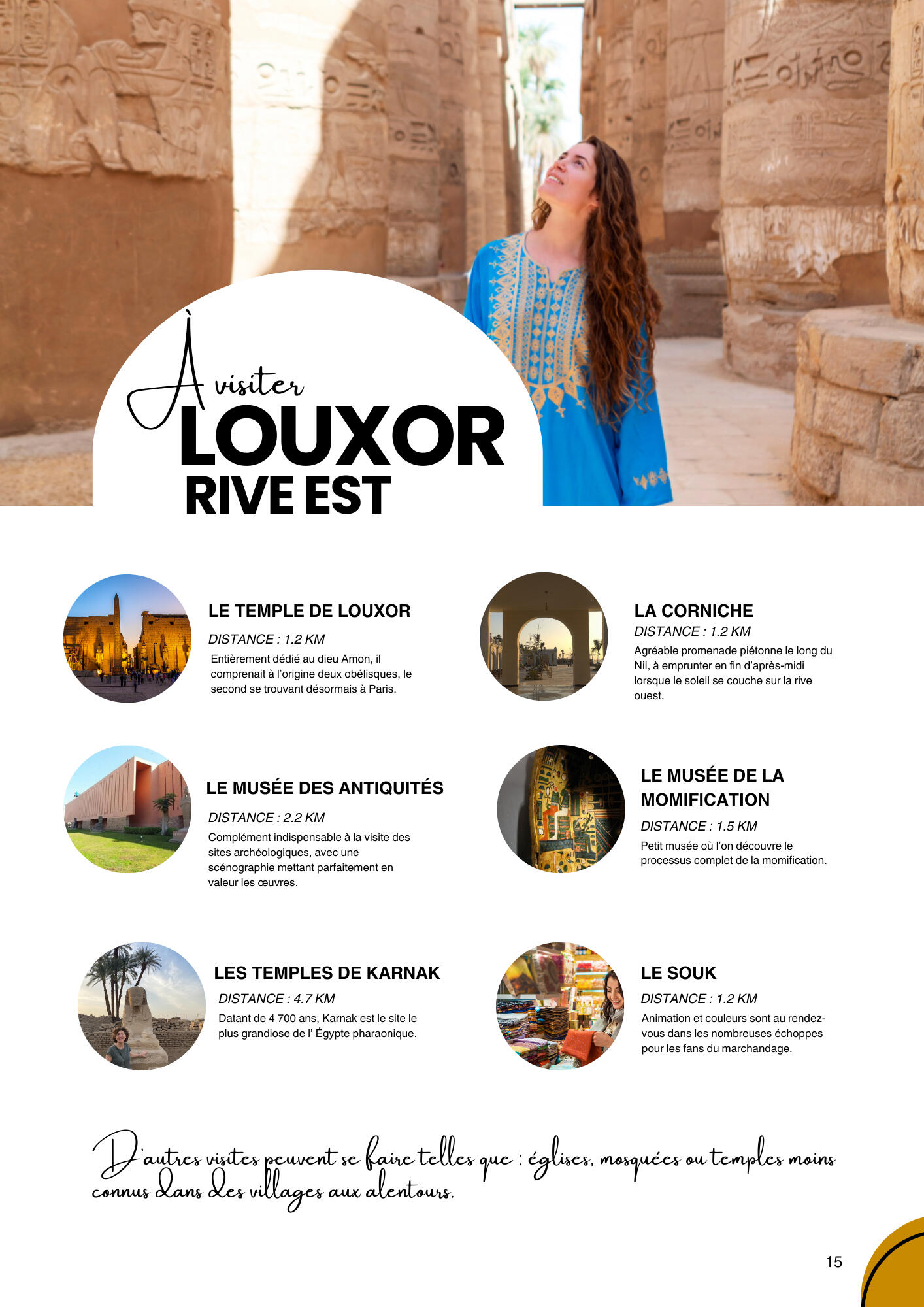 Découvrez les trésors cachés de Louxor, des majestueux temples de Karnak à l’intimité du musée de la momification, en passant par une promenade envoûtante au coucher du soleil le long du Nil.