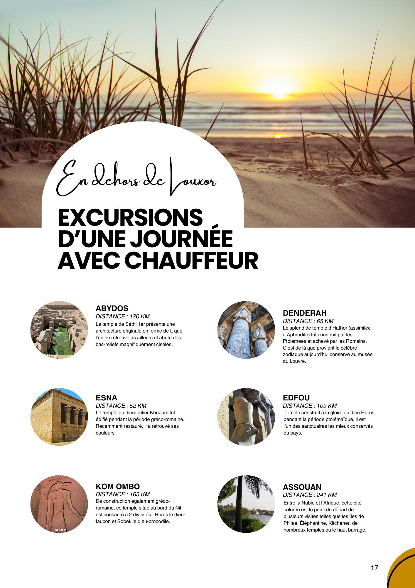 Explorez les merveilles cachées de l’Égypte avec nos excursions : des temples d’Abydos et Denderah aux sanctuaires d’Edfou et Kom Ombo, chaque site raconte une histoire millénaire.